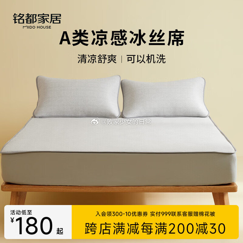 铭都A类凉感冰丝席 1️⃣床笠款150*200cm:网页链接 叠加30首购礼金,国补到手152.1 2️⃣床笠款180*200cm:网页链接 叠加30首购礼金,国补到手170.1 3️⃣绑带款150*200cm:网页链接 叠加30首购礼金,国补到手134.1 4️⃣绑带款180*200cm:网页链接 叠加30首购礼金,国补到手152.1
