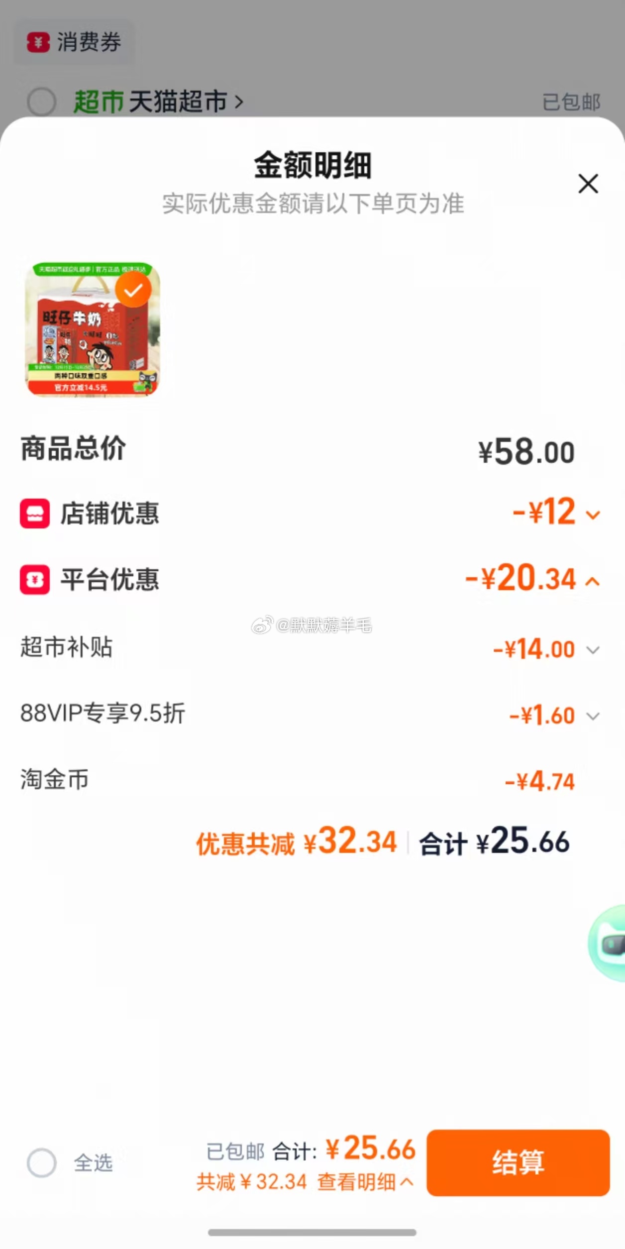 旺仔牛奶+O泡果奶组合装25.6元,淘金币抵扣4.74元🔥