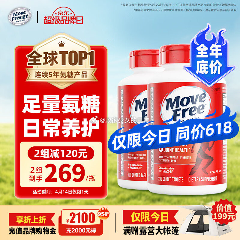 益节氨糖软骨素钙片红瓶200粒*2瓶,拍2到手1076元!