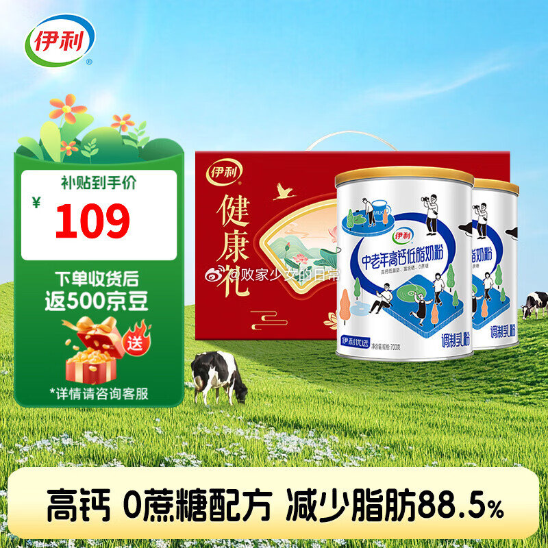 伊利中老年高钙低脂奶粉700g*2罐领券到手79元🉐返京豆