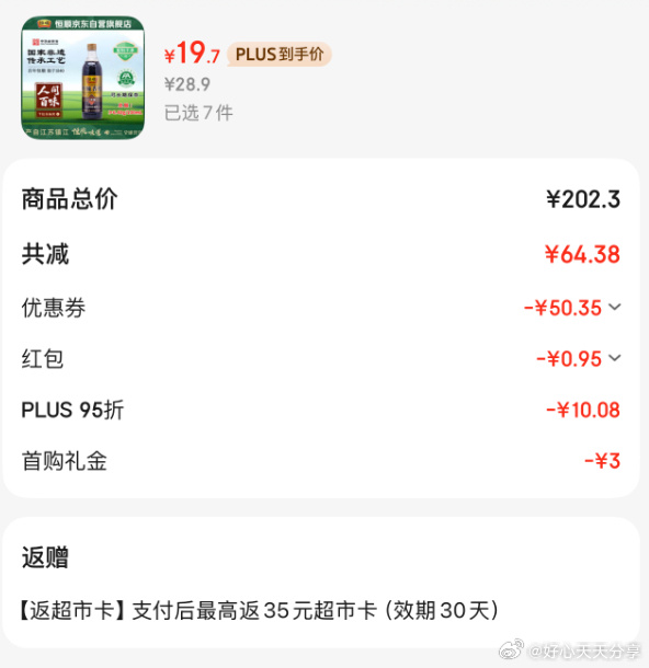 【京东】恒顺六年陈镇江香醋首购礼金💰拍7件19.83元/件返5卡