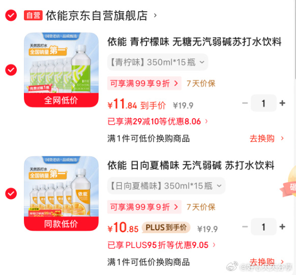 【京东】领黑五200-20券网页链接入会领29-10券网页链接依能 日向夏橘味 无汽弱碱 苏打水饮料 350ml*15瓶依能 日向夏橘味 无汽弱碱 苏打水饮料 350ml*15瓶塑膜装饮用水依能 青柠檬味 无汽弱碱苏打水饮料 350ml*15瓶依能 青柠檬味 无糖无汽弱碱苏打水饮料 350ml*15瓶 塑膜装饮用水有1首购礼金,各拍1件凑后【21.85】凑款网页链接