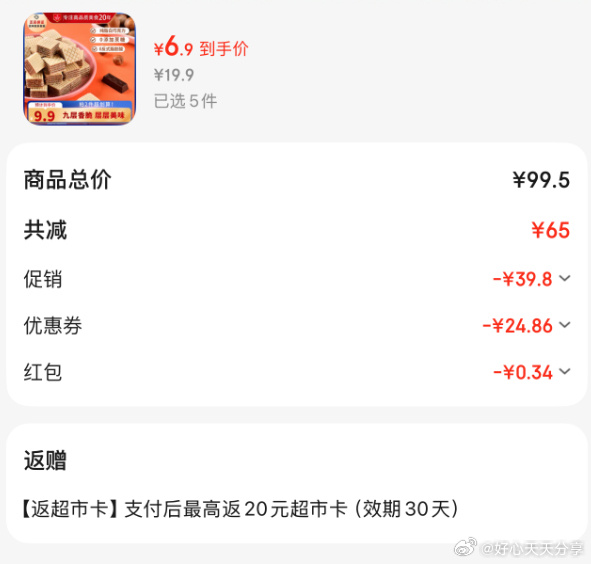 京东黑五200-20券 丹夫抹茶威化饼干6.96元/件