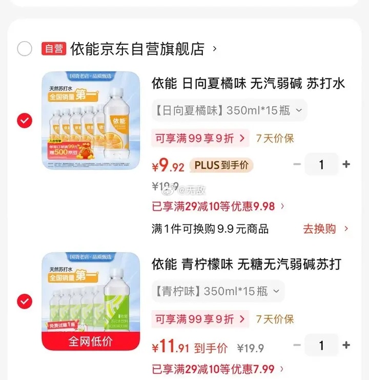 入会10券叠加首单付21 依能苏打水饮料350ml*15瓶
