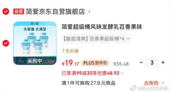 京东黑五200-20券 简爱酸奶百香果味凑单好价