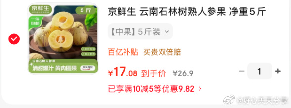 【京东】领黑五200-20券网页链接领10-5券网页链接京鲜生 云南石林树熟人参果 净重5斤 单果50g+ 凑后【17.2】京鲜生 云南石林树熟人参果 净重5斤 单果50g+ 生鲜水果源头直发包邮凑款网页链接