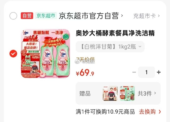 赠奥妙洗洁精1000g+京东家政服务2h卷