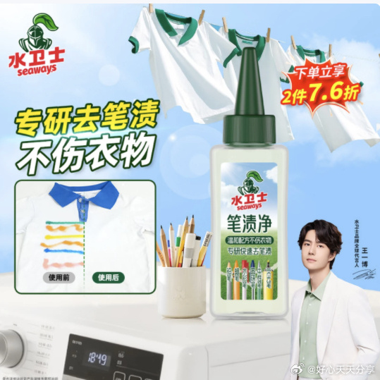 水卫士笔渍净50ml*1瓶 衣服去渍笔油性笔去除剂去笔渍笔迹神器去油笔