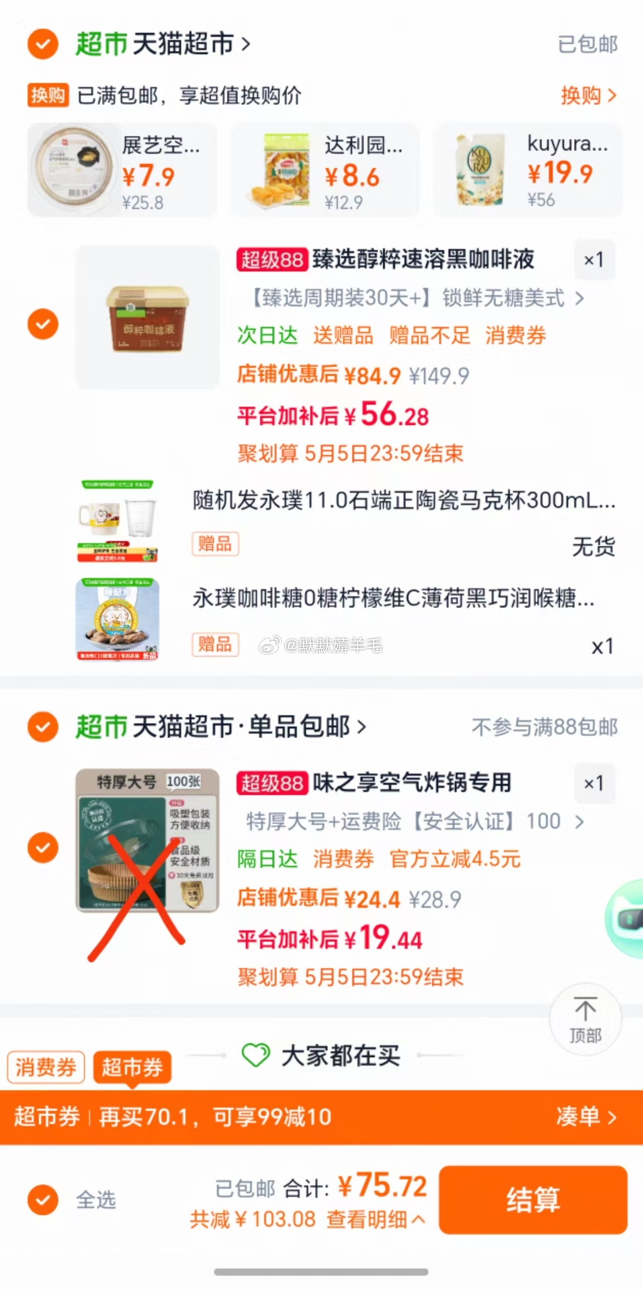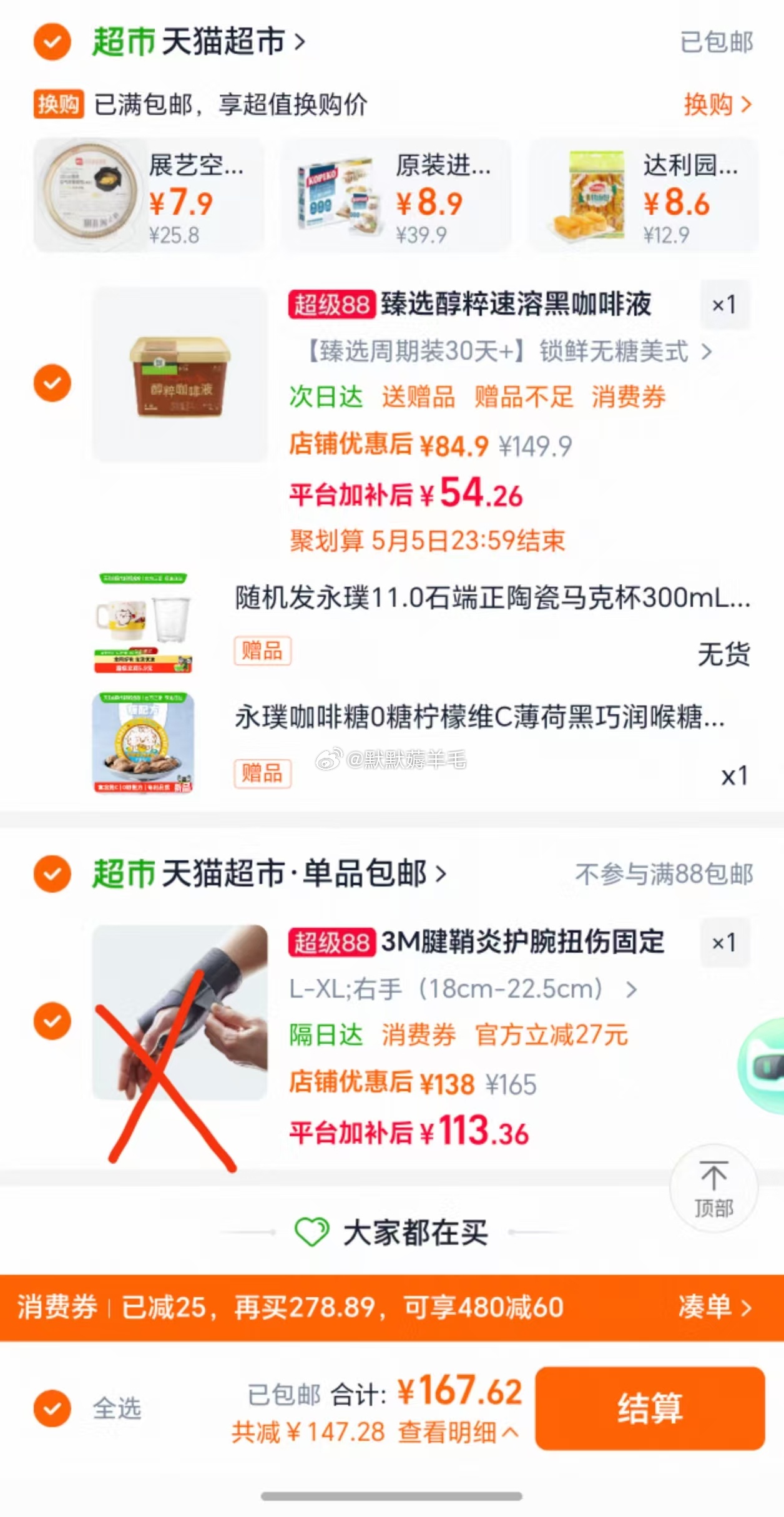 臻选 永璞醇粹黑咖啡无糖美式18g*50颗臻选醇粹浓缩黑咖啡液速溶美式拿铁0糖0脂便携下午茶提神锁鲜桶装赠品有马克杯300ml*1个+黑巧润喉糖*1盒,不同地区赠品有差异方案一(不消耗消费券)52.28到手领礼金+券,下拉超补加购,领99-15红包,凑从超补加购空气炸锅专用纸烤箱吸油纸垫纸家用食物硅油纸锡纸碗烘焙锅子电炸方案二(用88会员200-25消费券)54.26到手领礼金+券,淘金币加购,直接凑3M护腕腱鞘炎TFCC医用护腕骨折固定劳损妈妈手鼠标手扭伤支撑透气