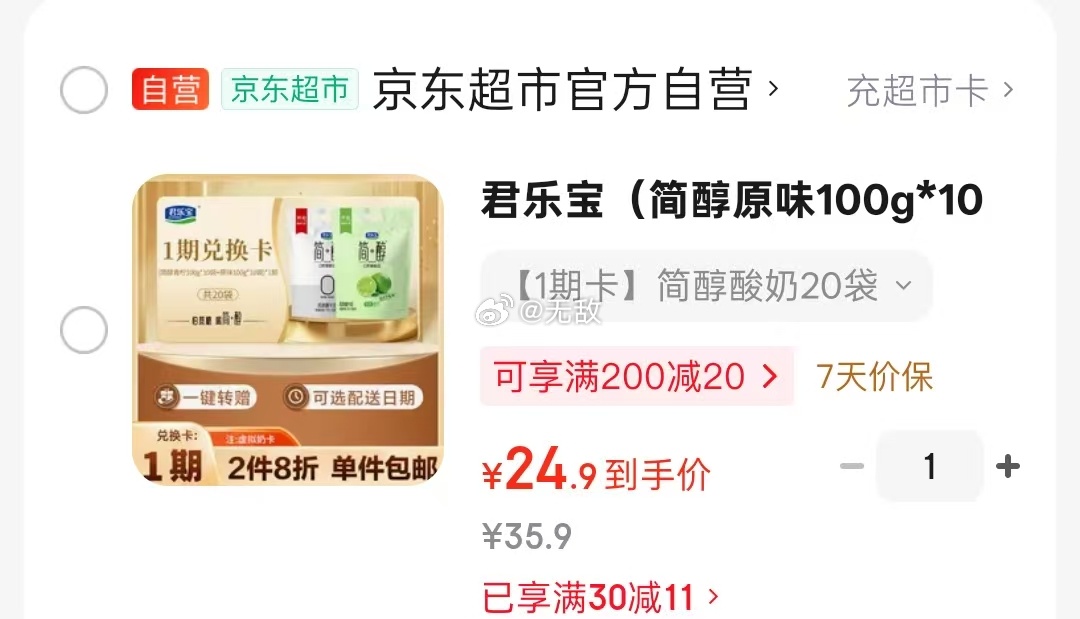 君乐宝简醇酸奶100g*20袋奶卡24.9元🔥折1.2/袋