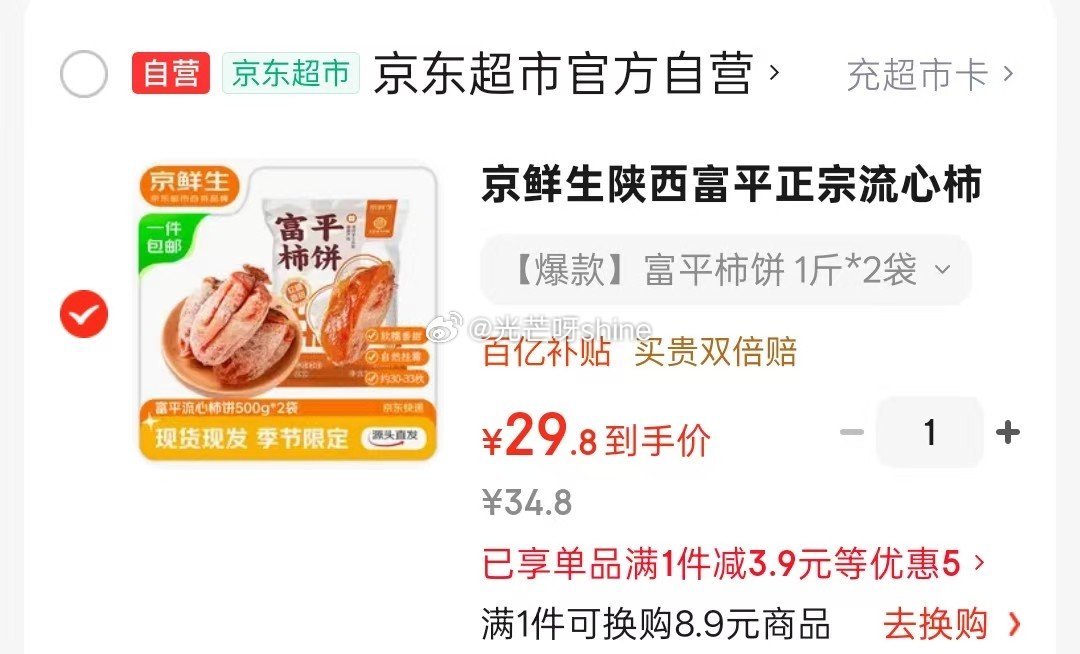 领2-1 网页链接 京鲜生&一颗大 红宝石樱桃番茄 爆汁西红柿净重418g*2盒【19】 京鲜生&一颗大 红宝石樱桃番茄 爆汁西红柿净重418g*2盒 源头直发包邮 领2-1 网页链接 京鲜生 陕西富平流心吊柿饼独立装 2斤 【29】 京鲜生陕西富平正宗流心柿饼净重2斤 1斤*2袋 水果源头直发包邮