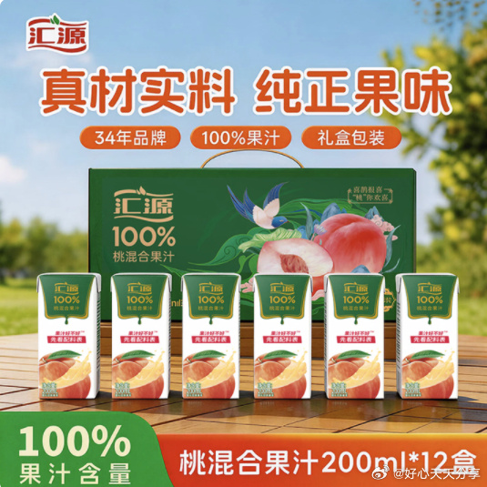 【京东】领黑五200-20券网页链接百亿补贴-加倍补网页链接 需要从app首页进入会场加购汇源100%桃混合果汁礼盒装果汁饮料200ml*12盒 凑后【8.95】汇源100%桃混合果汁礼盒装果汁饮料200ml*12盒节日送礼宴请凑款网页链接