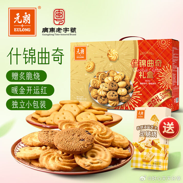 京东3-2全品券🔥元朗黄油曲奇饼礼盒17.4元