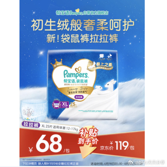 【京东】如有砸21-10券,或从领券中心看看有无直接领网页链接百亿补贴-加倍补网页链接 需要从app首页进入会场加购帮宝适 袋鼠裤拉拉裤XL25 【27.92】帮宝适袋鼠裤拉拉裤新生儿婴儿尿不湿尿片 超薄透气夜用 XL25