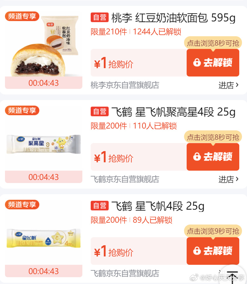 【京东】20点月黑风高百亿补贴网页链接品牌服饰5折券网页链接百亿补贴-超级加倍补网页链接从app首页进入会场提前解锁抢购资格秒杀会场- 每日必秒网页链接 美妆秒杀1元网页链接 速食会场1元网页链接儿童健康5折券网页链接汪贝秒杀网页链接 从右下赚钱进入