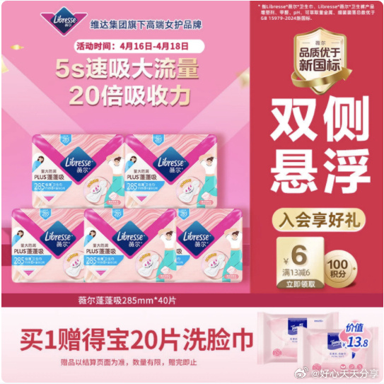 【京东】领黑五200-20券网页链接从直播间领44-21券网页链接薇尔PLUS蓬蓬吸 日用组合装40片 入会有2首购礼金 凑后【15.18】赠品洗脸巾20抽薇尔PLUS蓬蓬吸 超薄贴合透气防漏日用组合装40片京东自营姨妈巾凑款网页链接