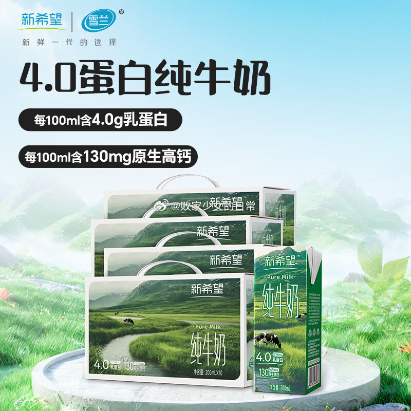新希望4.0纯牛奶200ml*10盒*4提到手99.7元💰