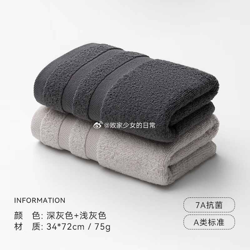 1️⃣三利毛巾 7A纯棉抗菌毛巾 深灰色+浅灰色 2条: