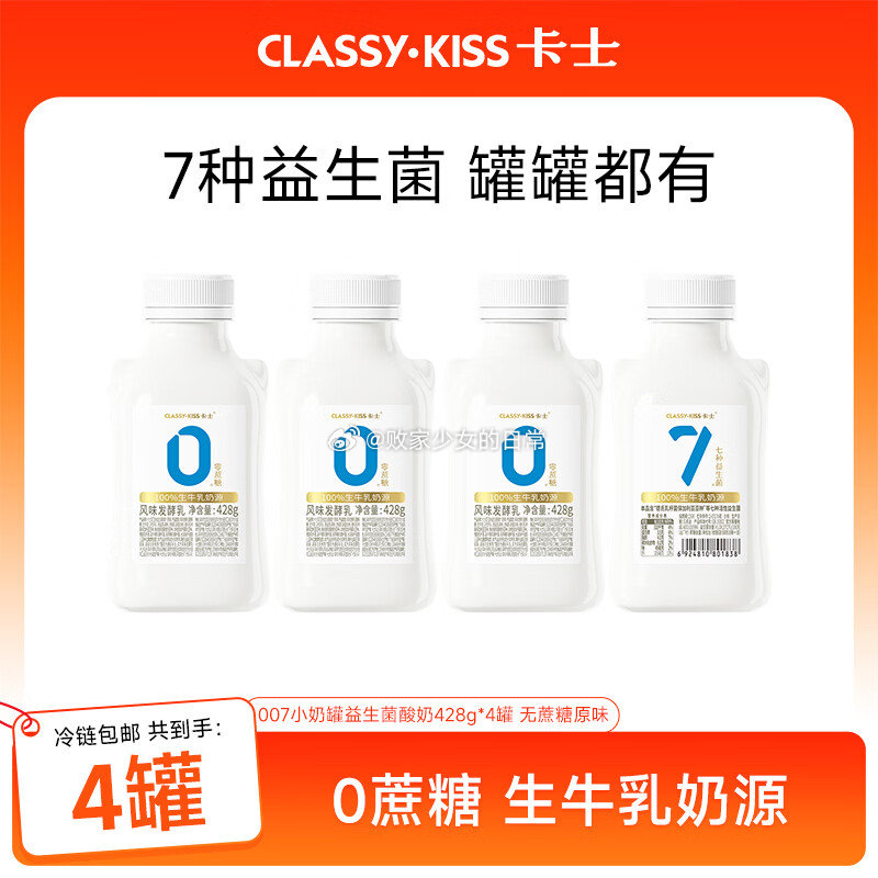 1️⃣卡士无蔗糖原味007小奶罐酸奶428g*4罐: