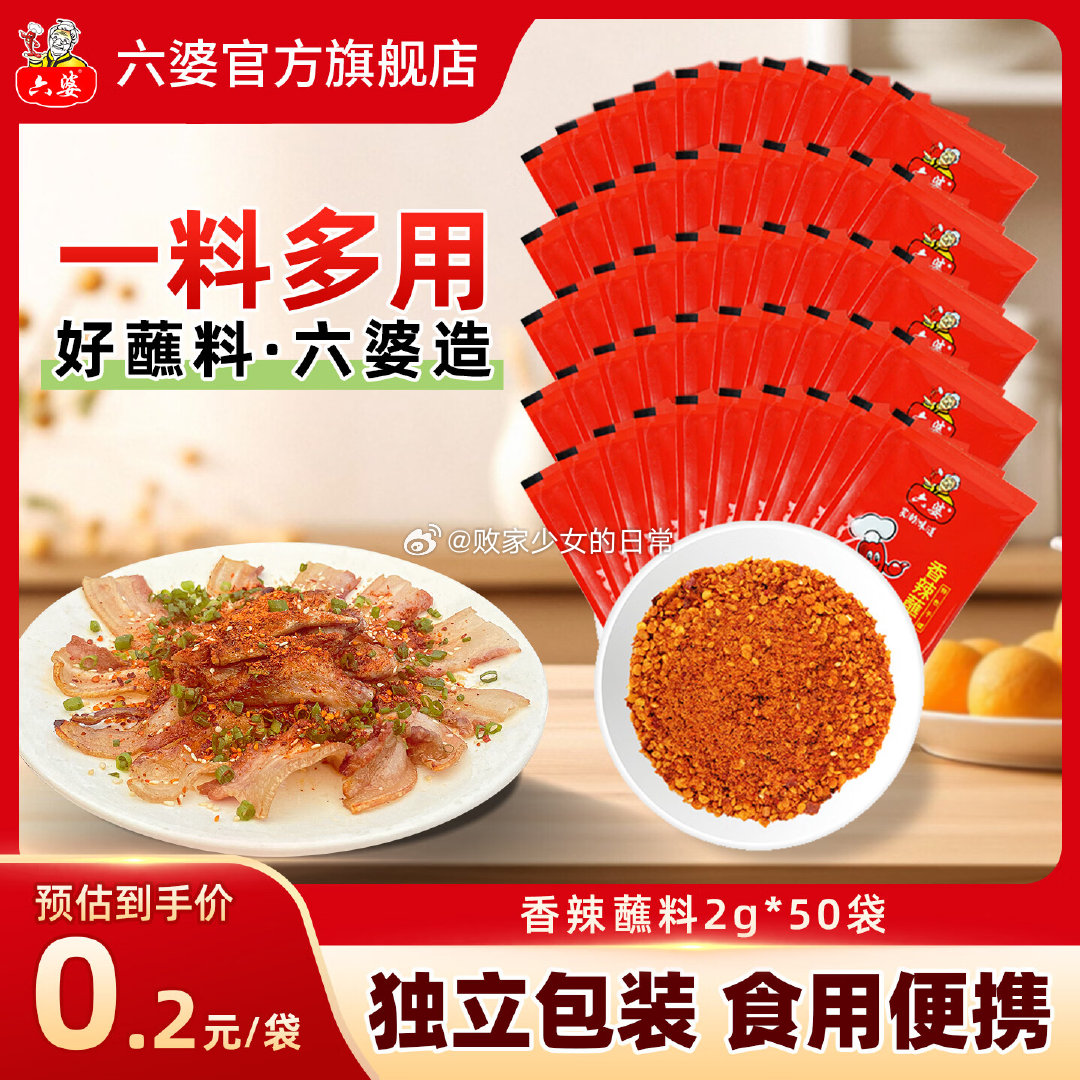 六婆辣椒面香辣蘸料2g*50袋到手8.5元🔥