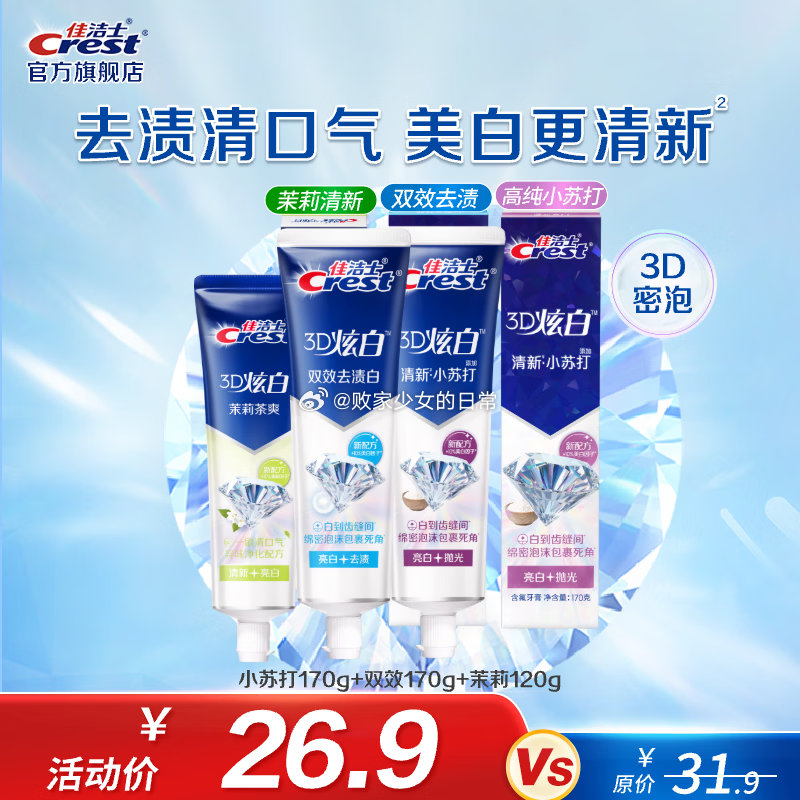 佳洁士3D炫白牙膏3支460g 领券到手20.9元💰