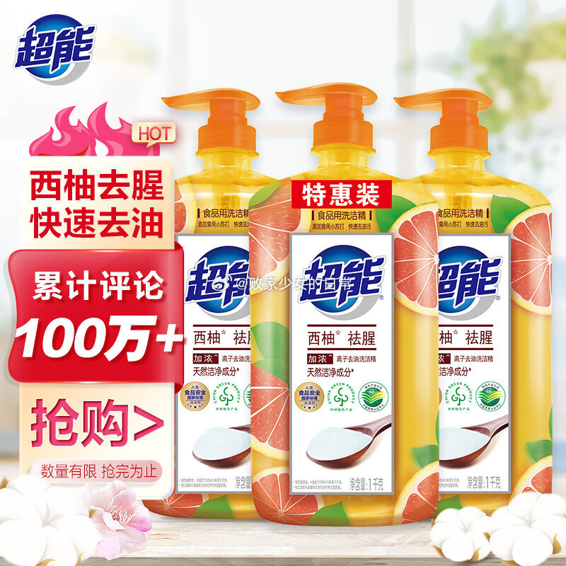 1️⃣超能 洗洁精离子去油 (西柚去腥)1kg*3瓶: