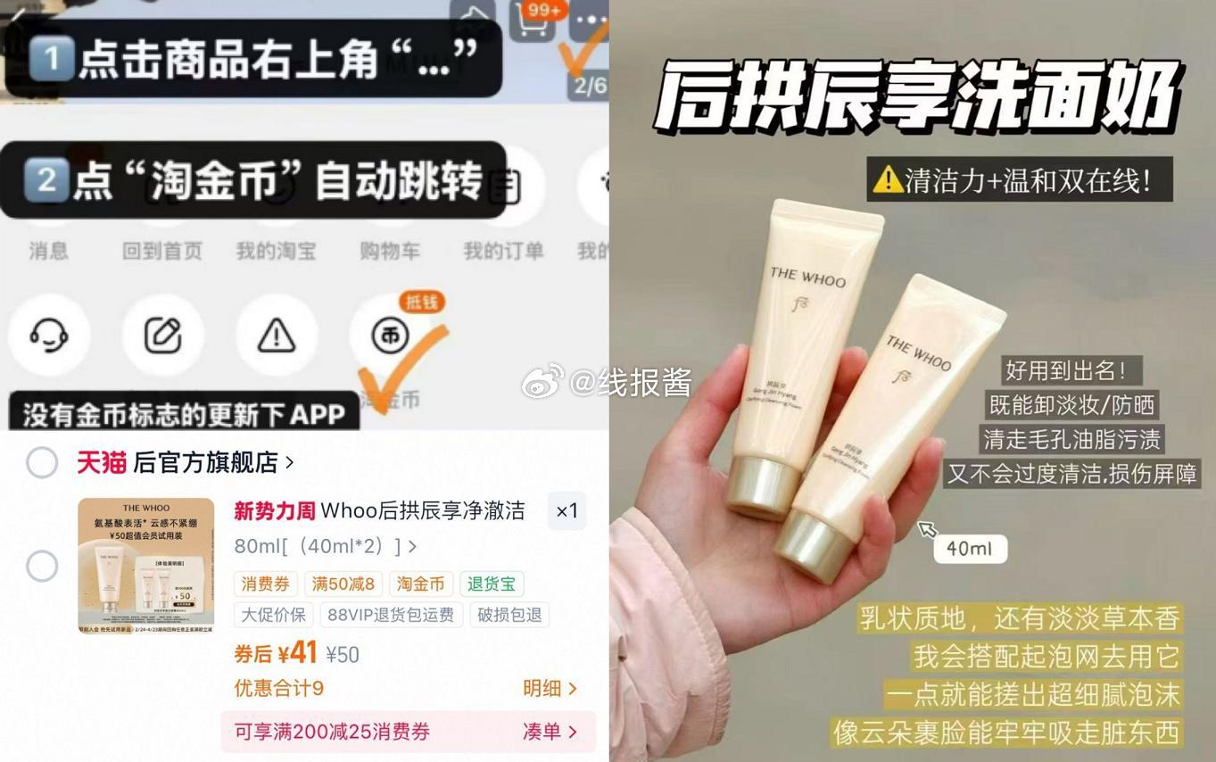 Whoo后洁面膏40ml*2支免费领!右上角进淘金币