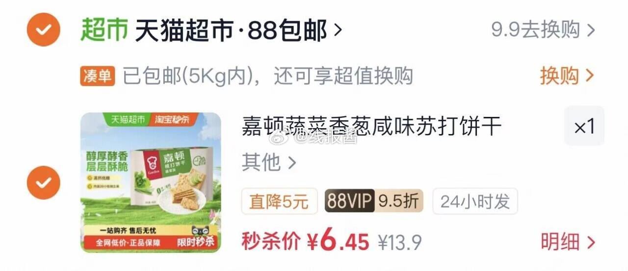 6.4亓‼嘉顿苏打饼干460g代餐零食