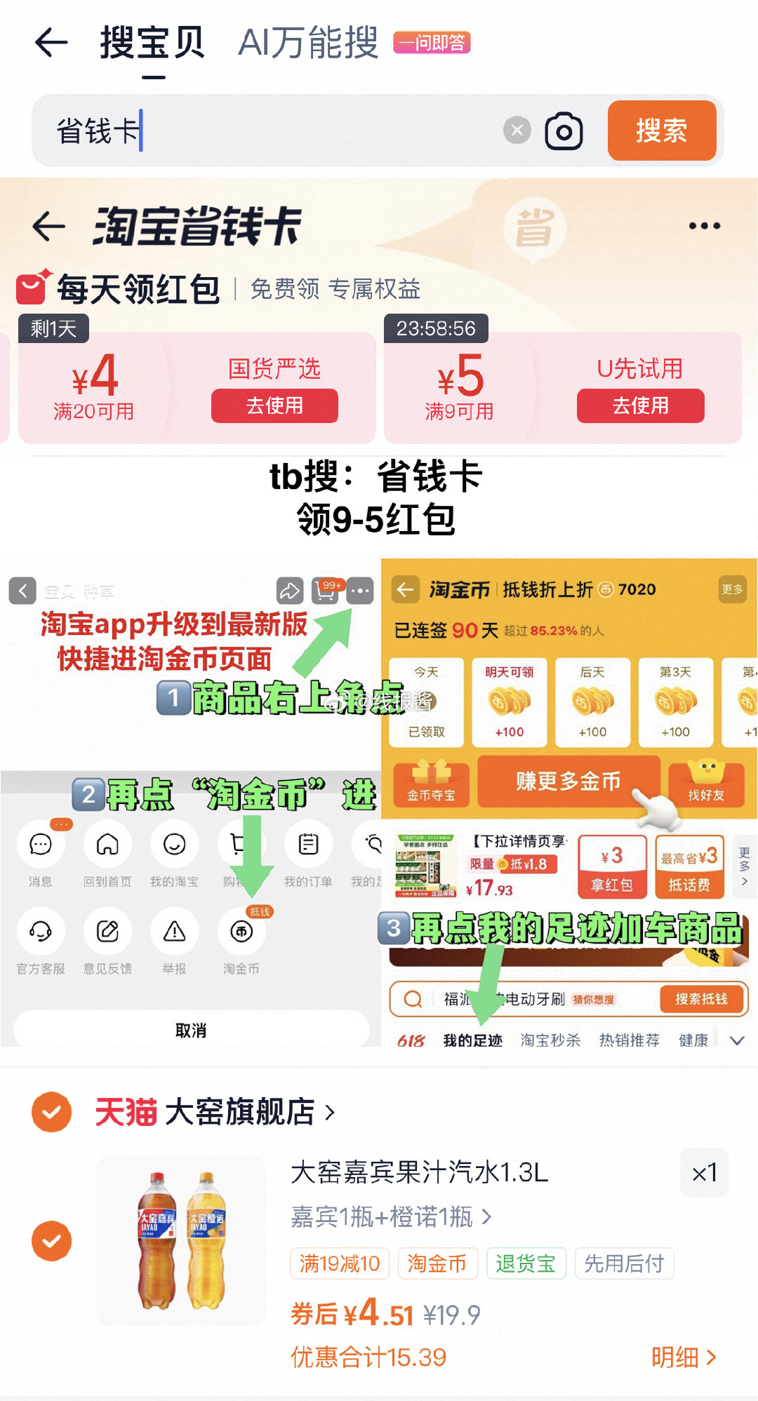 淘宝省钱卡领券!大窑果汁汽水2瓶仅4.9元🔥
