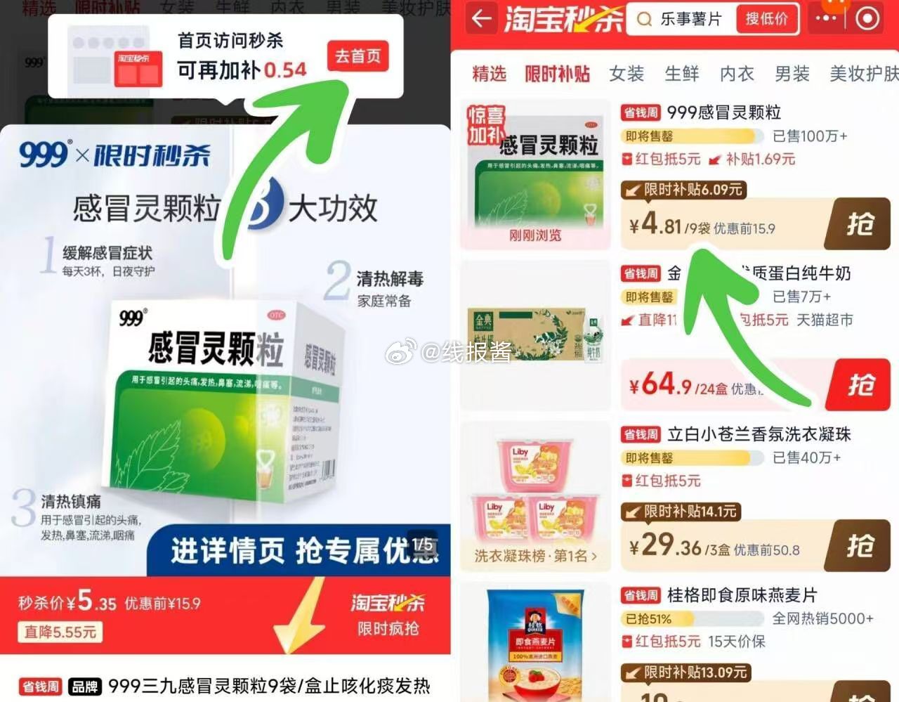 淘寳搜“省钱卡”领5劵,抢999感冒灵颗粒