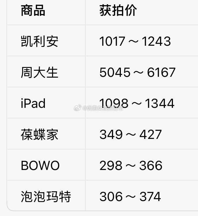 今天获拍价参考如图