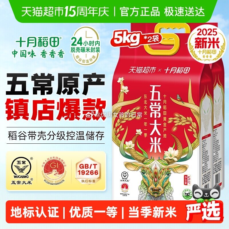 猫超 十月稻田东北五常大米5kg*2袋,领礼金【2025年新米】十月稻田五常大米5kg*2袋东北大米一年一季真空装 1️⃣去“淘宝秒杀”直播间,右上角惊喜权益领99-15红包 2️⃣商品页右上角进入超市直播间领9折主播券,先加购大米,直播间再加购140号鸡蛋 作为凑单 3️⃣淘金币页面加购抵扣8.99,商品下领149-15,vip到手【45.13】