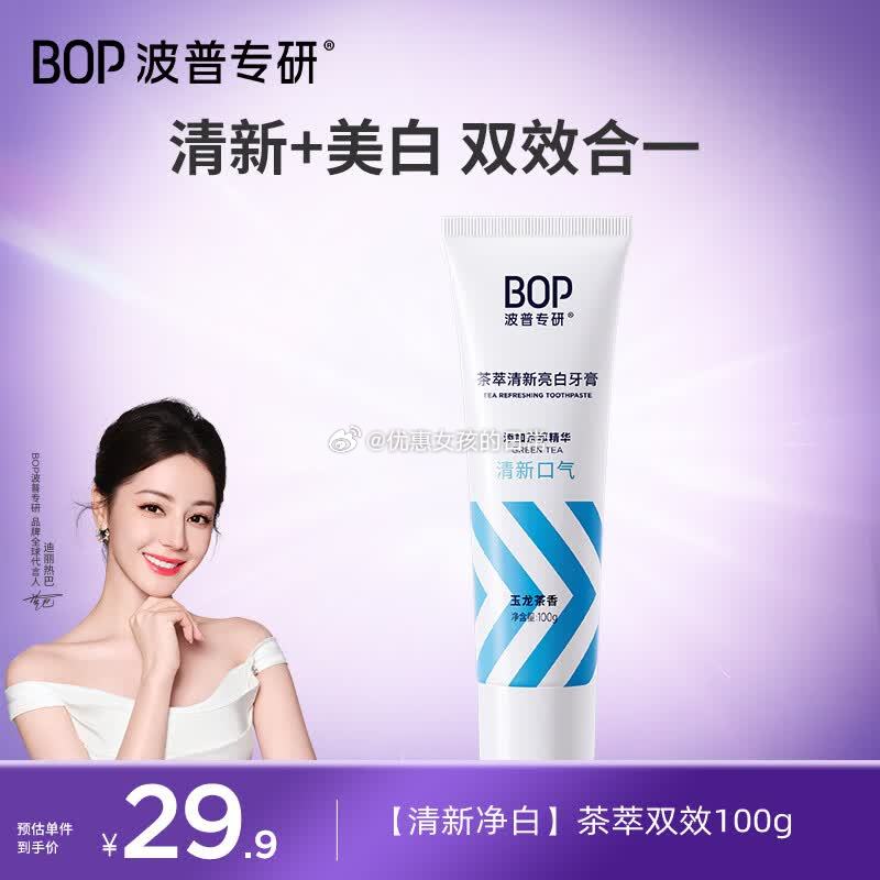 波普专研(bop)迪丽热巴同款茶萃牙膏亮白牙齿持久清新口气成人正品100g