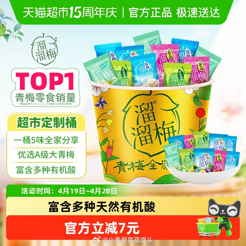 【10】溜溜梅 全家桶480g页面可领99-10先去右上角直播间加购1件,领9折。然后凑99-10,可到手10。下1件【超市独家】溜溜梅青梅定制全家桶蜜饯青梅西梅健康开味零食凑1件永璞速溶冻干咖啡粉即溶无蔗糖香浓醇正黑咖提神轻享装