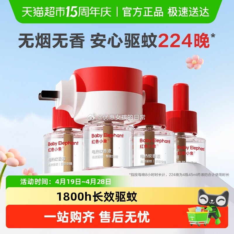 猫超红色小象电热蚊香液4液1器,领礼金到手13.4