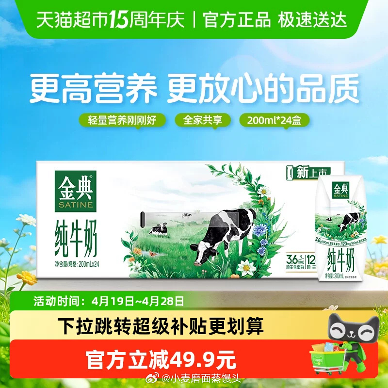 特价40元!金典纯牛奶200ml*24盒直播攻略