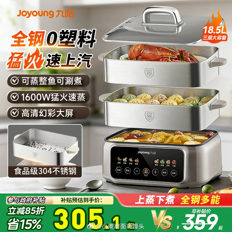 九阳电蒸锅多功能家用多层全不锈钢蒸煮炖一体锅2026新款旗舰正品