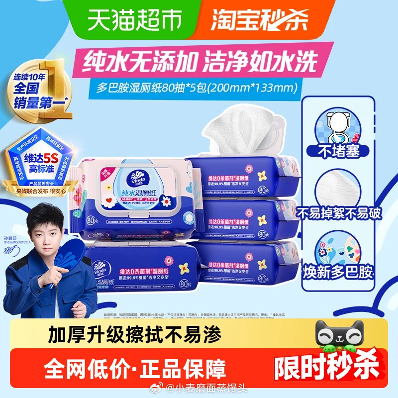 维达80片5包湿厕纸24.6元💰淘金币加购更低