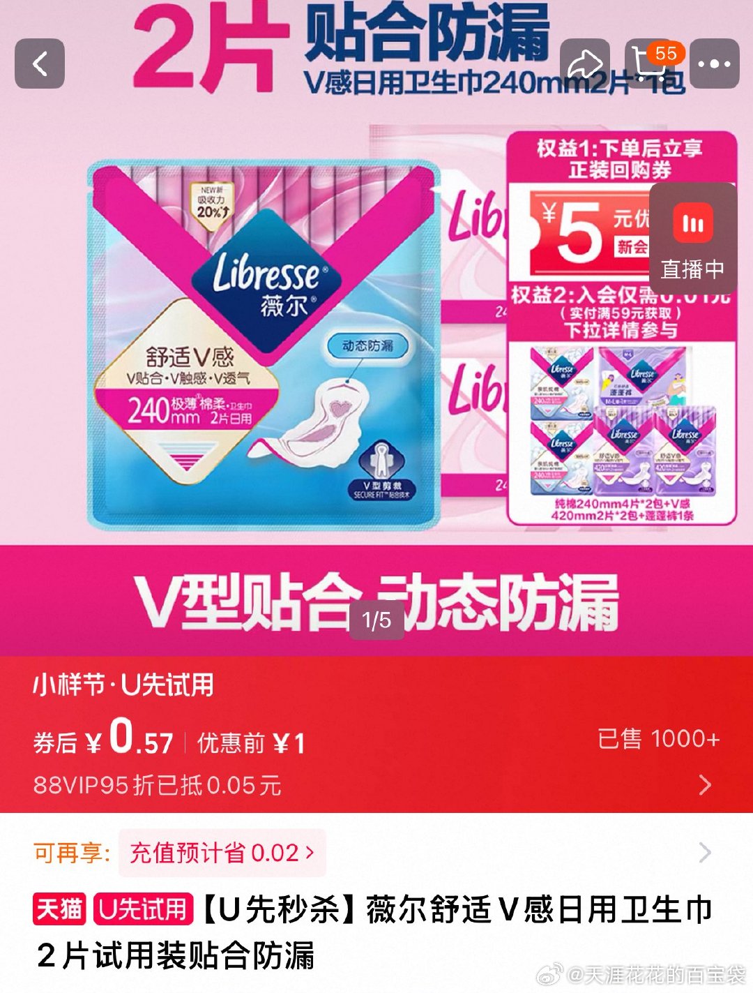 薇尔舒适V感日用卫生巾2片试用装秒杀