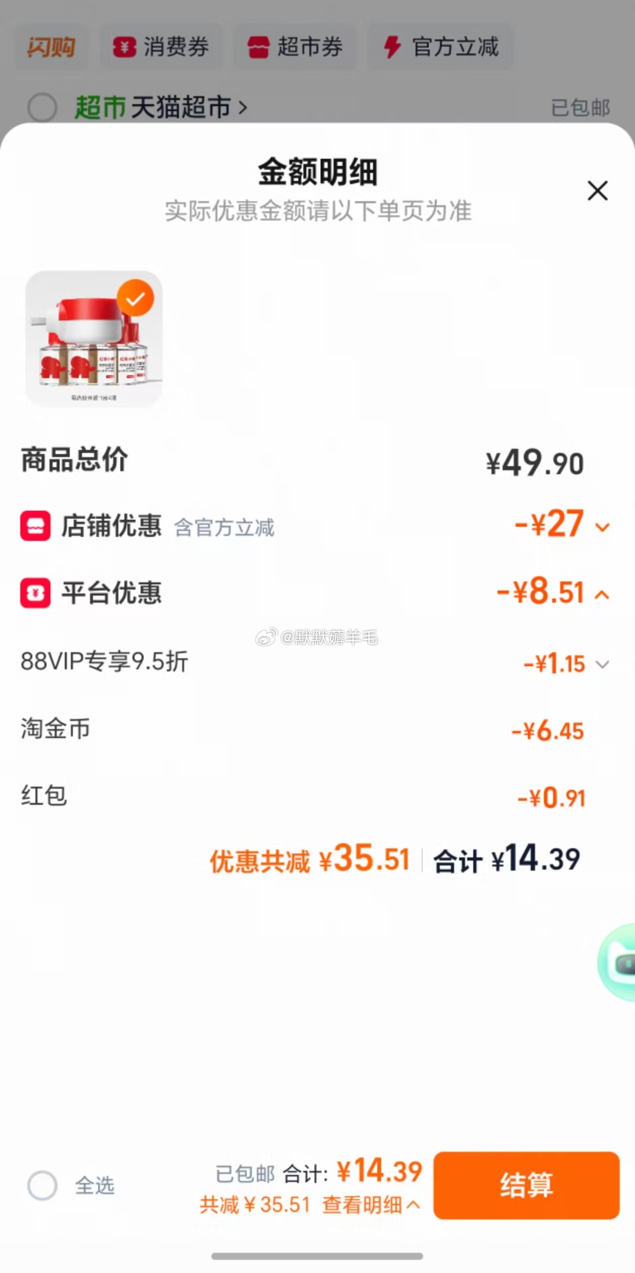 领弹窗礼金+券,淘金币加购(目前抵6.45)