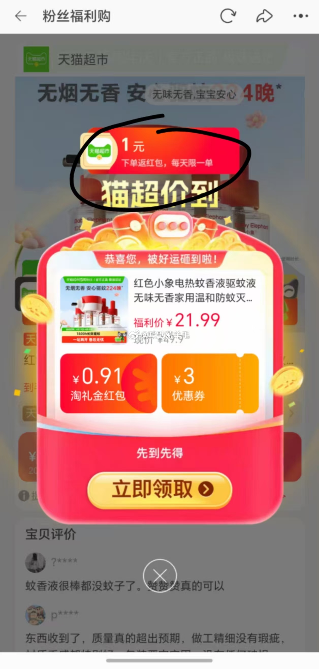 红色小象电热蚊香液4液1器13.3元🔥返1红包