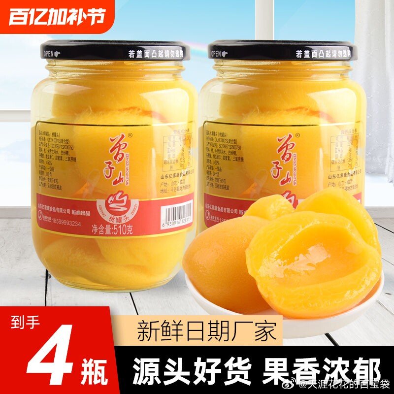 曾子山 新鲜水果罐头4瓶,【14.1】