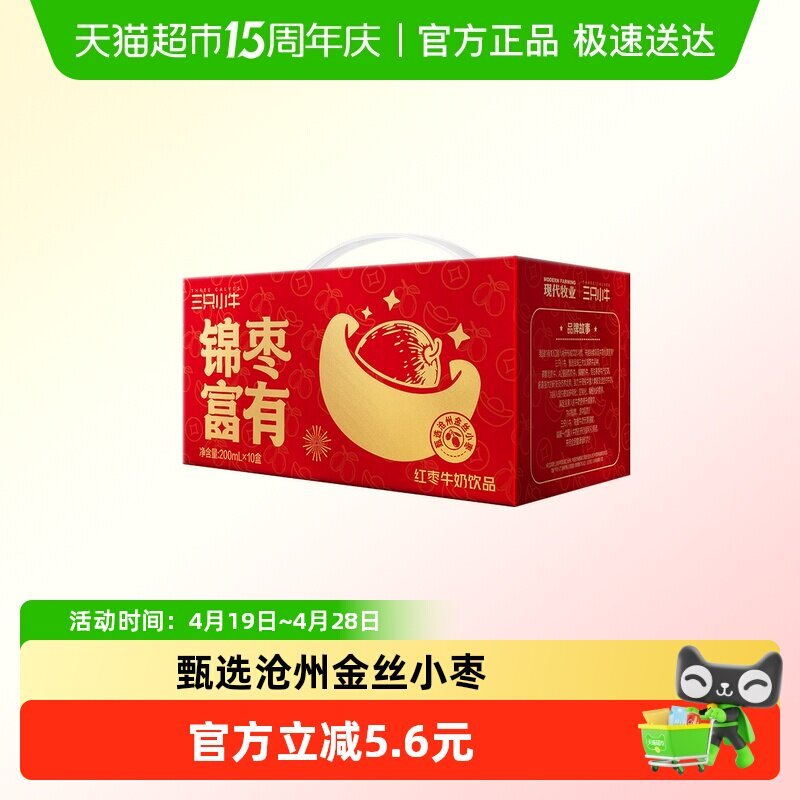 三只小牛红枣风味含如饮料200ml*10盒 , 叠金币后【3.78】