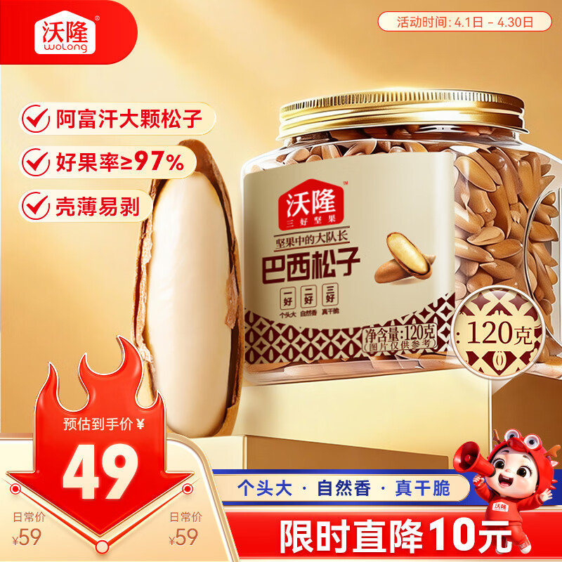 沃隆 手剥松子120g罐装,叠1礼金,凑后【12.93】