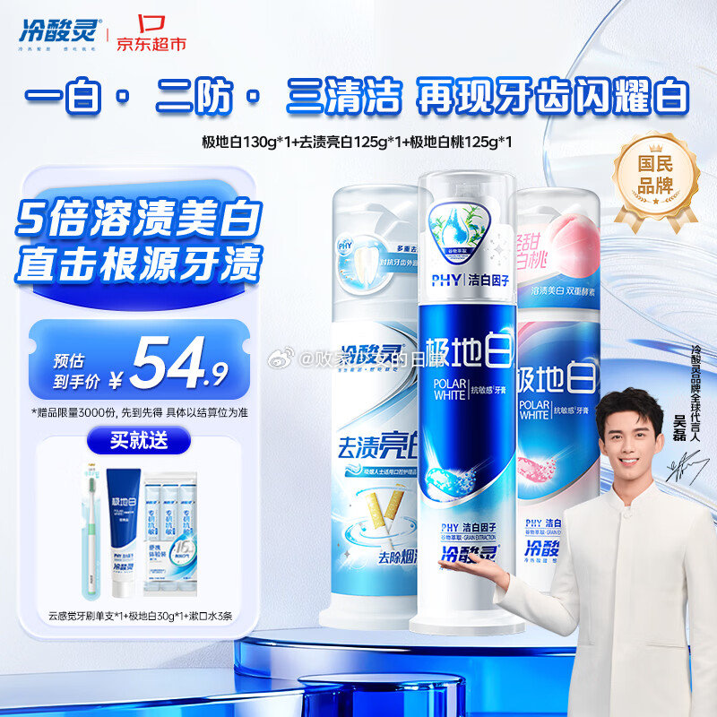 目前有返4元超市卡,赠极地白牙膏30g+云感觉牙刷1支+漱口水3条,以实际结算为准