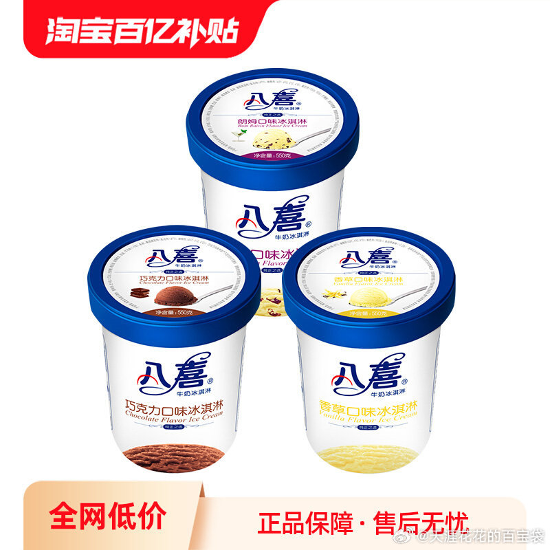 【百补】八喜冰淇淋550g*3大桶装牛奶冰淇淋家庭分享装多口味