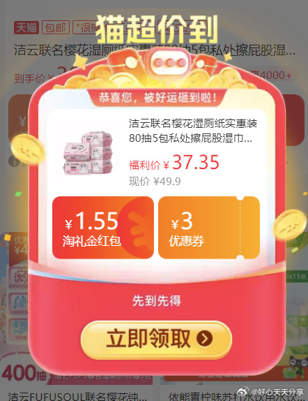 【猫超】部分账号有2元福袋 洁云湿厕纸低至17.92🧧