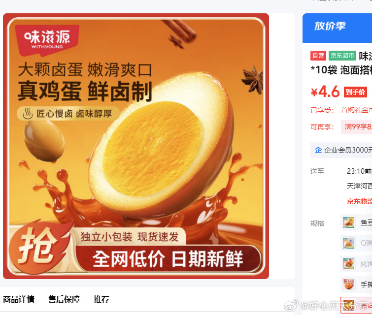 京东味滋源香卤蛋10袋【4.6元】首购礼金