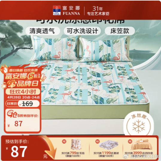 富安娜 凉席冰丝席 150D 1.2米床 【59】