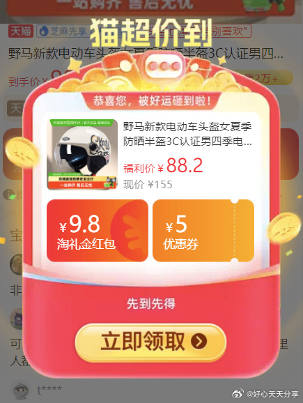 【猫超】野马 新款电动车头盔 弹礼金野马新款电动车头盔女夏季防晒半盔3C认证男四季电瓶摩托车安全帽淘宝扫图②进入直播间,右上角惊喜权益领79-12红包从主图右上角进入超市直播间,弹领9折券并加购拍下88vip【61.99】图片显示还有反1元猫超红包